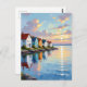 Behalt in Touch mit deinen Familienfreunden mit dieser wunderschönen Postkarte mit einer Ai-Abbildung einer Reihe von Hütten an der Küste einer Bucht oder am Meeresufer bei Sonnenuntergang.