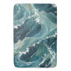 Eine digital erstellte Darstellung turbulenter Meereswellen in verschiedenen Blau- und Grüntönen mit weißen Lichtern simuliert die überhitzten Wappen des Wassers. Die stilisierte Natur der Wellen gibt ein Gefühl der Bewegung, und die aufwändige Farbgestaltung verleiht dem Wasserthema Tiefe.