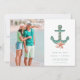 Erleben Sie das Wesen der Meeresromantik mit unserem Coastal Wedding Foto Save the Date. An der Vorderseite befindet sich ein atemberaubendes Foto und ein aquamariner grüner Wasseranker, der mit Muscheln geschmückt ist und das perfekte Symbol für Ihre Feier am Strand ist. Dreh es auf, um auf der Rückseite ein stilvolles Stripmuster zu entdecken, das eine Touch nautischen Charmes verleiht. Ideal, um Ihre Gäste einzuladen, an der Freude Ihrer Hochzeit an der Küste teilzunehmen und ihren Kalender für einen Tag voller Liebe und Meeresbrisen zu markieren!