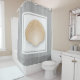 Reizender grauer hölzerner Plankenhintergrund mit einem Rahmen des weißen Quadrats und einem ausführlichen Tan bogte Seashell in der Mitte aus! Groß für einen KüstenHüttenbadezimmerblick!