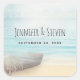 Küstenstrandszene Hochzeit retten das Datum Quadratischer Aufkleber