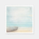 Papierservietten mit einem schönen rustikalen Bild. Feine Farben von hellblau, sandig braun und sanft weiß. Eine Strandlandschaft mit einem Boot am Ufer mit einem Fischernetz an der Seite. Ein eleganter, schäbiger Look.