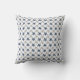 Dieses Akzidenzkissen wird mit einem reizvollen navyblauen, grauen und weißen Küsten-Themen-Streifenmuster auf der Vorderseite und auf der Rückseite mit einem Seestern-Muster gezeigt.