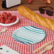 Inspiriert durch die Kalifornien-Küste, ist dieses gestreifte Muster ein Spaßakzent an jedem möglichem Party, besonders ein Sommerpool-Party!