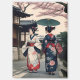 A charming magnet featuring a serene Kyoto spring street scene with traditional kimono and cherry blossoms. Perfect for adding a subtle Japanese touch to your space.