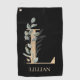 Letter L monogramm floral. Letter L in goldbrauner Textur mit grünen Aquarellfarben Blätter, Blume Blüten und Goldstaub. Personalisiert mit Namen in passendem Schriftart.