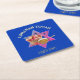 Stilvoll israelisch-blau ROSH HASHANAH Jüdischer Neujahrspapier-Untersetzer, zeigt einen Stern von David mit einer Schüssel Äpfel und einem Honiggericht. Oben ist der Gruß L'SHANAH TOVAH, geschrieben in weiß und Imitat Gold Typografie, gefolgt von ROSH HASHANAH in hebräischer Text am unteren Rand. ALL TEXT (ohne Hintergrundtext) IST KUNDENBAR, sodass Sie Ihren eigenen bevorzugten Text und Ihre Schreibweise (z.B. Shana Tova) mit den einfach zu bedienenden Vorlagen erstellen können. Wählen Sie aus einer großen Auswahl an stilvollen, individuell gestalteten jüdischen Feierlichkeiten und Geschenken, die von Berean Designs entworfen wurden.