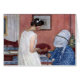 Une jeune femme regarde en bas comme une vieille femme en bleu hems sa robe. Art vintage de Carl Larsson.