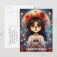 Die Postkarte zeigt eine atemberaubende Wiedergabe von "La Calavera Catrina: Blüten des Lebens" in ihrer Mitte. Die lebhaften Farben springen von der glänzenden Oberfläche ab und zeichnete das Auge mit seinem lebendigen Reiz. Das Kunstwerk wird von einem dünnen, eleganten Rahmen umgeben, der der Komposition eine Touch von Eleganz verleiht. Im Vordergrund steht La Calavera Catrina hoch und anmutig, ihre Anwesenheit beherrscht Aufmerksamkeit. Ihr blumengeschmücktes gemustertes Kleid strahlt eine Reihe lebendiger Farben aus und fasziniert den Betrachter mit seinen faszinierenden Details. Die zarten Pinselstriche verleihen den Blüten ein Gefühl der Textur, sodass sie fast lebensähnlich erscheinen. Catrinas Vision ist ein Beleg für die Geschicklichkeit der Künstlerin, deren liebenswerte Merkmale zart dargestellt werden. Die rosigen Wangen und funkelnden Augen verleihen ihr einen spielerischen Charme, während sich ihre Lippen in ein sanftes Lächeln abbiegen und Wärme und Leben ausstrahlen. Ein prächtiger Hut, mit einer Fülle von Blüten und üppiger Vegetation geschmückt, schmückt den Kopf von Catrina und verleiht ihr einen Hauch von regaler Pracht. Der Hut wirft einen weichen Schatten über ihr Gesicht und fügt dem Portrait Tiefe und Dimension hinzu. In Catrinas Händen gefangen, nimmt ein sorgfältig gefertigter Zuckerschädel die Bühne in den Mittelpunkt. Seine komplizierten Muster und lebhaften Farben dienen als wichtige Erinnerung der heiklen Balance zwischen Leben und Tod und bieten eine tiefe Betrachtung der Transienten des Lebens. Ein zarter Nebel, der an Wasserfarbenstriche erinnert, umhüllt Catrina und den umliegenden Raum. Diese ätherische Aura verleiht der Szene eine traumhafte Qualität, als ob sie den Betrachter einlädt, in eine Welt zu treten, in der die Grenzen zwischen Realität und Vorstellungskraft verschwinden. Insgesamt ist diese Postkarte ein visuelles Meisterwerk, das die Essenz von "La Calavera Catrina: Blüten des Lebens" in einem tragbaren, gemeinsam nutzbaren Format erfasst und die Empfänger einlädt, in ihrer Schönheit zu erleben und die tief greifenden Themen, die sie hervorruft, zu betrachten.