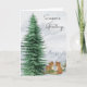 Deux bébés renards vintages et un petit oiseau doux apparaissent avec un sapin à feuillage persistant sur un arrière - plan vintage de subtiles forêts d'hiver noir et blanc et gris pour faire une belle carte de vacances inspirée de la nature, avec le texte, Bonnes Fêtes. L'intérieur est vide, prêt à customiser avec votre propre message.