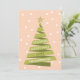 This modern holiday card fea graphic ribbon Christmas tree and can be personalized with the year and family name. The the der ticket shape has a hole punched at the top that can be used to add a ribbon embellishment.