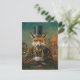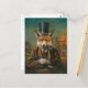 Cette carte postale représente un renard victorien dappeur en robe de gentleman devant un manoir en feu.