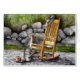 Une chaise de basculage de bois du pin avec un chapeau de paille décoré d'un bandana bleu coloré accrochant sur le dossier. Au sol sur le pavé lapide une boîte d'arrosage rouillée et quelques planteurs de terre cuite. L'arrière - plan est rempli de mur fait de rochers et un bon nombre naturels d'herbe gentille et verte. Une aquarelle paisible et pittoresque.