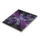 Copyright © 2014, Susan Wallace. Blätter des befleckten Glases des Imitats in den Schatten helles Lila, silbern, des Singrüns und des violetten Rahmens eine zentrale Blume von vibrierendem Lila in diesem verwickelten abstrakten Stück.