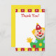 Ce carte de remerciements mignon comporte un clown de cirque coloré portant un costume de clown de point de polka. Complètement personnalisable.
