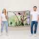 Une petite corneille solitaire sur une branche en silhouette contre un ciel bokeh couleur coucher de soleil alors qu'un Grand Héron Bleu vole... Fabriqué en combinant 2 photos que j'ai prises ensemble et quelques éditions colorées