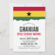 Une carte d'invitation blanche sur le thème du drapeau ghanéen pour votre prochain événement sur l'île. Un excellent produit à utiliser pour un événement gastronomique ghanéen, ou pour un barbecue au poulet jerk.