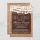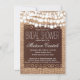 Ficelle rustique de pays des invitations de Fête de la mariée de toile de jute de lumières. Ces invitations nuptiales de douche de pays ont un arrière - plan imprimé de toile de jute avec une conception vintage imprimée de papier brun. Il y a les lumières rougeoyantes de scintillement au dessus. Le dos de l'invitation est conception imprimée de toile de jute. Ce sont grands pour les douches nuptiales de pays. La conception de toile de jute est juste une conception imprimée de haute qualité (tissu non réel de toile de jute).