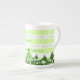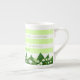 Le Fleur-de-le-Mois et la pierre porte-bonheur pour mai sur une tasse rayée. La paire de fleur et de gemme pour mai est le muguet et l'émeraude. La tasse a la signification du fleur-de-le-mois et de la pierre porte-bonheur.
