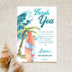 Le grand 1 1er anniversaire surfing rétro plage carte de remerciements de la fête. Une grande vague bleue, un palmier et une planche de surf, bel été, thème de fête d'anniversaire de plage.