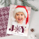 Le carte photo de vacances Whimsical présente une photo verticale ou portrait préférée avec "JOY" comme un riche texte de prune bordeaux superposé en bas. Une illustration de flocon de neige remplace le "O". Personnalisez avec votre salutation personnalisée et les noms le long du bas.