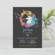 Invitation en forme de coeur de soufflement de fête d'anniversaire de bulles de licorne.