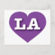Diese Postkarte zeigt ein pulsierendes lila Herz mit den fett-weißen Großbuchstaben LA, der offiziellen Abkürzung für Louisiana (der pelikanische Staat) ODER Los Angeles (die Stadt der Engel). Die Rückseite der Postkarte ist leer und wartet auf Ihren personalisierten Text oder Ihre handgeschriebenen Gefühle.