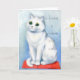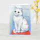 Cette belle carte pour amoureux de les chats est l'illustration d'un chatte blanc magnifique assis sur un coussin rouge confortable, regardant beaucoup à la maison. L'illustration est de Louis Wain, célèbre artiste de chat anglais. Le texte sur le devant de la carte dit Accueil est là où se trouve le chat. La carte serait parfaite pour les amis et la famille qui aiment les chats.