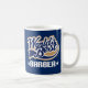 Le cadeau frais de tasse de bleu marine et de blanc indique le meilleur coiffeur du monde.