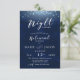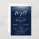 Célébrez la veille avec cette invitation à dîner étoilée. Le design de Dark navy présente des étoiles faibles et des lumières lumineuses. Customisez pour votre dîner de répétition.