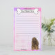 La papeterie Fun Kawaii Bloodhound a un mignon chien de dessin animé dans le coin inférieur droit. Personnalisez instantanément ce papier à lettres en remplaçant "Votre nom ici" dans l'os du chien. Le arrière - plan est un superbe teint rose au violet.