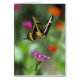 Un papillon jaune de machaon monte au-dessus d'une fleur rose de zinnia. Photographie et conception de Victoria Lynn Hall.