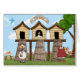 Le poulailler avec un poulet sur son nid d'oeufs et deux poules de sortir au marché avec leurs sacs à main. Cute Americana.
