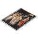 La Primavera (Frühling) von Sandro Botticelli, Temperamalerei auf Holzplatte c. 1482 ist eine monumentale Darstellung einer Prozession alter klassischer Götter, die die Rückkehr des Frühlings verkündet, ein Thema, das die Zeit der Erneuerung der Renaissance symbolisiert. Im Zentrum des Gemäldes befinden sich die Göttinnen Venus und Flora, die sich über das Bild erstrecken: Merkur, die Drei Gräber, Chlor und Zephyrus. Ein Jalousier, geflügelt, fliegt vor dem Hintergrund der dunklen Blätter eines Orangenhains über den Kopf und richtet seinen Pfeil auf die tanzenden Graces. Primavera in seinen eleganten klassischen Figuren, Details von Kostüm, Blattwerk und Blume, und komplexe Komposition bildet eine der ikonischen Bilder der Western-Kunst und einen enormen Einfluss auf die Kunst der Renaissance. Sandro Botticelli (1445-1510) war ein florentinischer Maler der frühen italienischen Renaissance, der unter dem Meister Filippo Lippi lehrte. Das ausgefeilte Werk von Botticelli spiegelt mit starken gotischen Einflüssen eine Studie der antiken klassischen Skulptur wider und wurde für seine lineare Gnade und seinen Rhythmus, seine flachen Reliefformen mit starken Konturen und seine subtile Färbung bekannt. Die Komplexität der Bedeutungen in Botticellis Kompositionen, aus Quellen, die aus der klassischen Antike, Mythologie und Philosophie gezeichnet wurden, begeisterte Gelehrte seit Jahrhunderten.