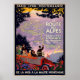 Die Route des Alpes Services automobiles de tourisme de la mer à la haute montagne. Reiseplakat für Frankreich mit einem Touristen- und Reiseführer in einem PLM (Compagnie des chemins de fer de Paris à Lyon et à la Méditerranée) Tourbus mit Route von Nizza nach Evian und darüber hinaus.