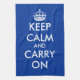 La serviette de cuisine bleue | gardent le calme et continuent la conception personnalisable de |. Idée originale de cadeau d'anniversaire pour les hommes et des femmes. Personnalisez-la et faites votre propre drôle garder le calme et continuer la parodie. La couleur d'arrière - plan peut être les accessoires mignons oranges roses changés de partie de cuisine et de cuisson du vert bleu etc. d'IE pour le chef. En outre gentil pour les plats ou le BBQ de lavage. Modèle vintage de typographie. Exemples : gardez le calme et la partie dessus.