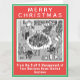 Carte de Noël amusante avec une scène montrant une table de dîner s'effondrant sous le poids de tous les aliments. Un homme saupoudrant du poivre en est la cause ! Drôle dessin de Noël sur une carte de Noël.