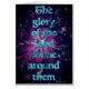 'La Gloire du Seigneur brillait autour d'eux' Luc 2:9 Citation vers de la Bible avec typographie d'art abstraite en étoile bleue, noire, orange, violet et rose créée à l'aide d'acryliques. Illustration de typographie religieuse chrétienne créée par l'artiste Catherine Sweetman à l'aide d'encres acryliques.