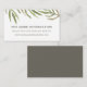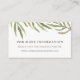 Ces petites cartes correspondent à notre collection de mariages botaniques d'aquarelle de verdure et sont une façon élégante et discrète de diriger les clients vers votre site mariage pour plus d'informations. Le design comprend un spray de feuilles d'aquarelle verte sur le dessus, avec trois lignes de texte personnalisé en simple lettrage vert olive.