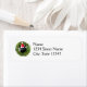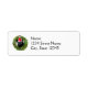 Eine schwarze Katze mit einem rot-weißen Schnappdeckel gleicht sich aus einem immergrünen Kranz auf diesen Rücksendeadressen-Aufklebern aus.
