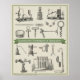 Diese Schwarz-Weiß-Gravuren decken das gesamte Spektrum wissenschaftlicher Studien ab. Zu den vorgestellten Artikeln zählen verschiedene Maschinen, Laborinstrumente, Apparate und vieles mehr.