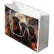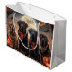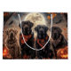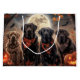 Entfesseln Sie den unheimlichen Geist mit diesem unheimlichen Halloween-Design, das eine Hundepackung unter einem dunklen, mondbeleuchteten Himmel bietet, umgeben von fliegenden Fledermäusen und glühenden Kürbissen. Ideal für diejenigen, die mit ihren wütenden Freunden eine Touch voller Furcht Liebe haben!