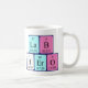 Labrador Hero schrieb als La B H Er O (Lanthanum Boron Hydrogen Erbium Oxygen) auf einer Tasse für den Wissenschaftler, der Teil der Packung ist.