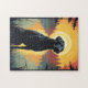 Farbenfrohe Kunst mit einem Labrador im Wald bei Sonnenuntergang.