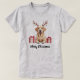 "This beautiful illustration features a detailed portrait of a loving Yellow Labrador Retriever with its characteristic broad head, gentle expression, and smooth golden coat. The dog is given a charming holiday touch with reindeer antlers adorned with small golden and green/blue ornaments. Two beautifully wrapped Christmas presents with red ribbons sit prominently on either side. This high-quality graphic is ideal for personalized holiday gifts for Lab owners, Christmas cards, apparel, ornaments, or any product celebrating this friendly and devoted dog breed."