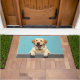 The soft ocean blue background adds a refreshing and welcoming feel, perfect for entryways. Designed with extra space at the top and bottom, it allows easy personalization with names, welcome messages, or custom text—making it ideal for unique dog-themed doormats and thoughtful gifts.