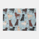 Niedliche Labrador Retriever Hunde in den Farben Schwarz, Schokolade, Rot und Gelb. Labrador Hunde mit Pfotenabdruck und Hundeknochenmuster.