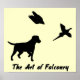 Silhouette eines Labradors und Falken, die als Einheit zusammenarbeiten. Die Worte The Art of Falconry unten.