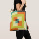 Dieses Bild ist ein geometrisch abstraktes Design mit konzentrischen quadratischen Schichten, die nach innen spiralförmig sind. Die Quadrate sind fett und kontrastfarben: gelb, orange, rot, olivgrün und lila. Jeder Quadrante wechselt in der Farbe, was dem Design einen dynamischen und fast optischen Täuschungseffekt verleiht. Die Kombination aus warmen und coolen Farbtönen schafft ein Gefühl von Tiefe und Balance.