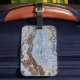 Behalt dir dein Gepäck mit diesem Acryl-Gepäckanhänger, der ein Bild der komplizierten Muster einer Platte von Lace Agate zeigt. Eine tolle Geschenkidee für den Rockhund!